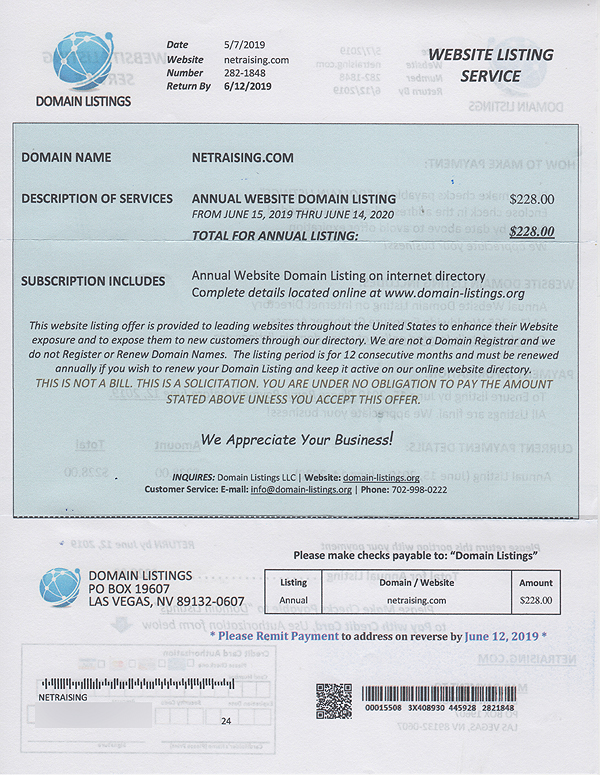 These scams frequently involve letters and/or emails that look like invoices for ongoing services. The services include things like listing your site with major search engines, improved search engine listings, search engine listing/rating reports, or directory listings. These are…